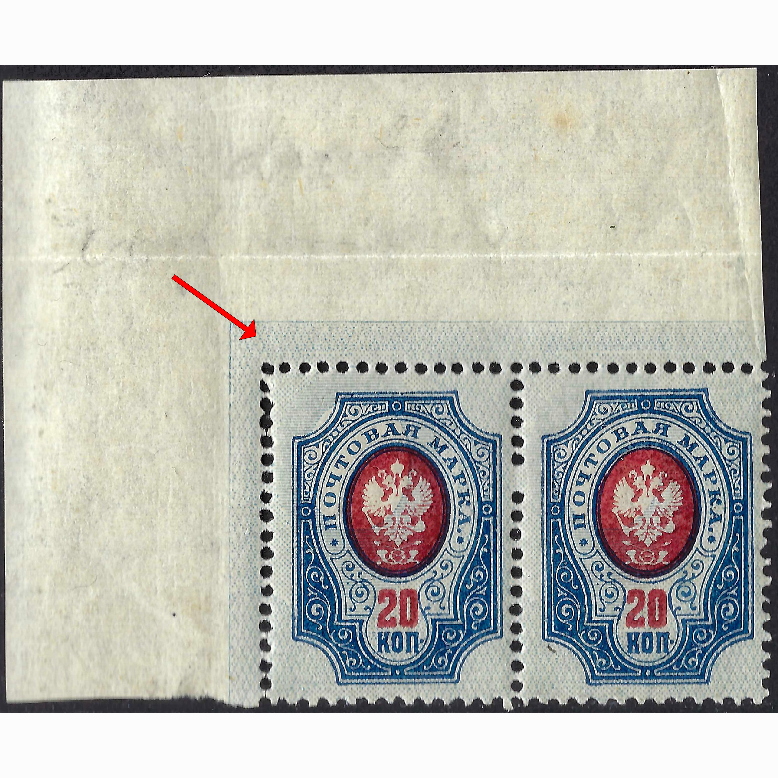 (ОШИБКА) 1908, Российская Империя, 20k, Соловьев #73 / Мишель #72A, Типография, Без ВЗ, P14:14½