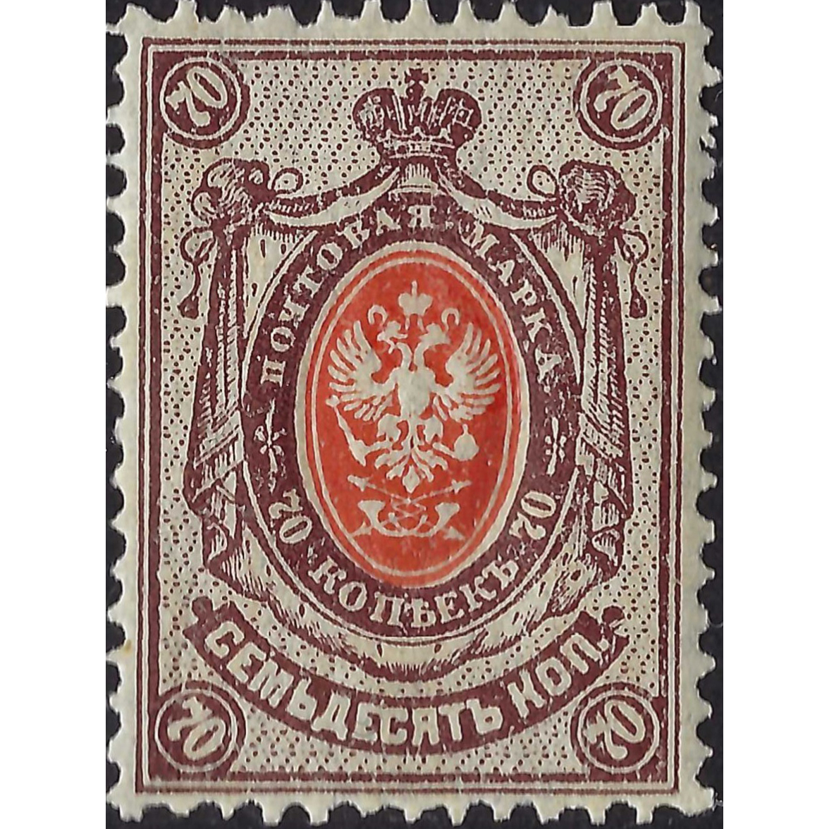 (ОШИБКА) 1908, Российская Империя, 70k, Соловьев #77 / Мишель #76A, Типография, Без ВЗ, P14:14½