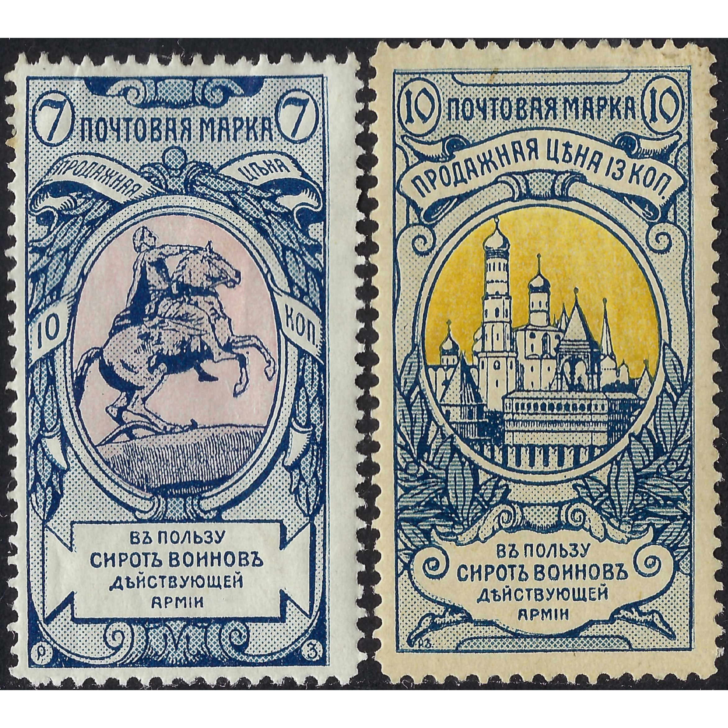 1905, Russian Empire, 7+3k-10+3k, Solovyov #60A-#61A, Typographed, UnWmk, P13½