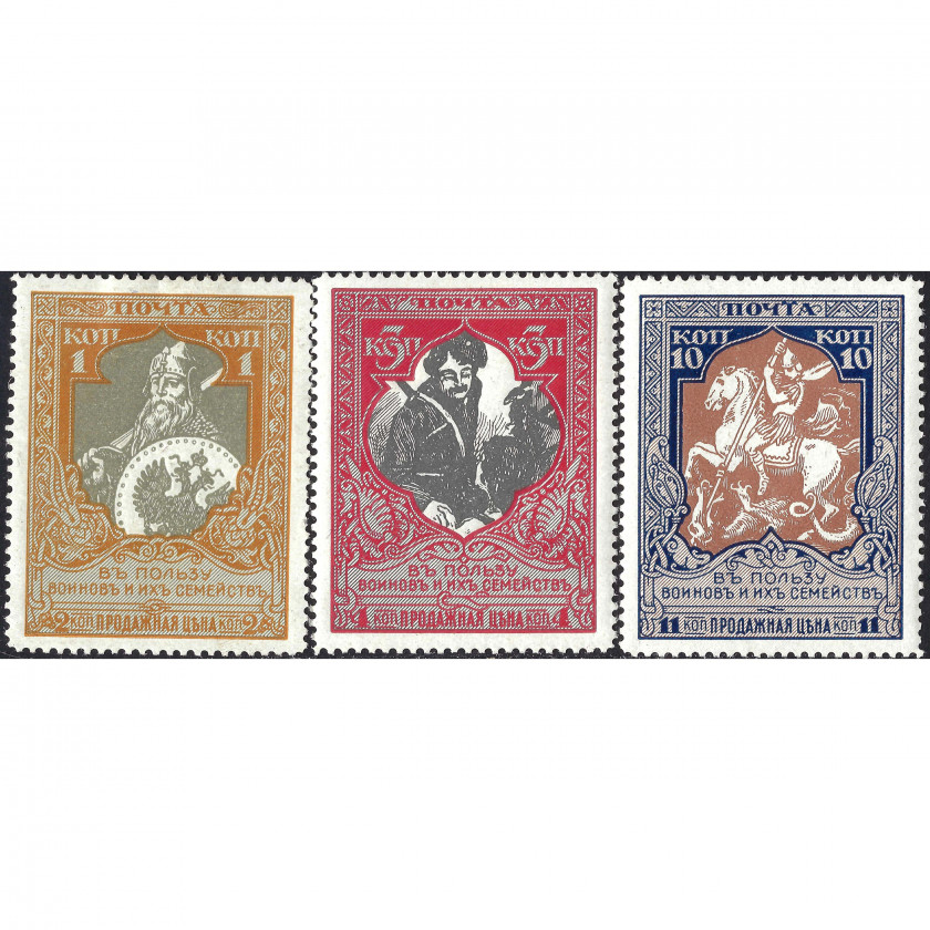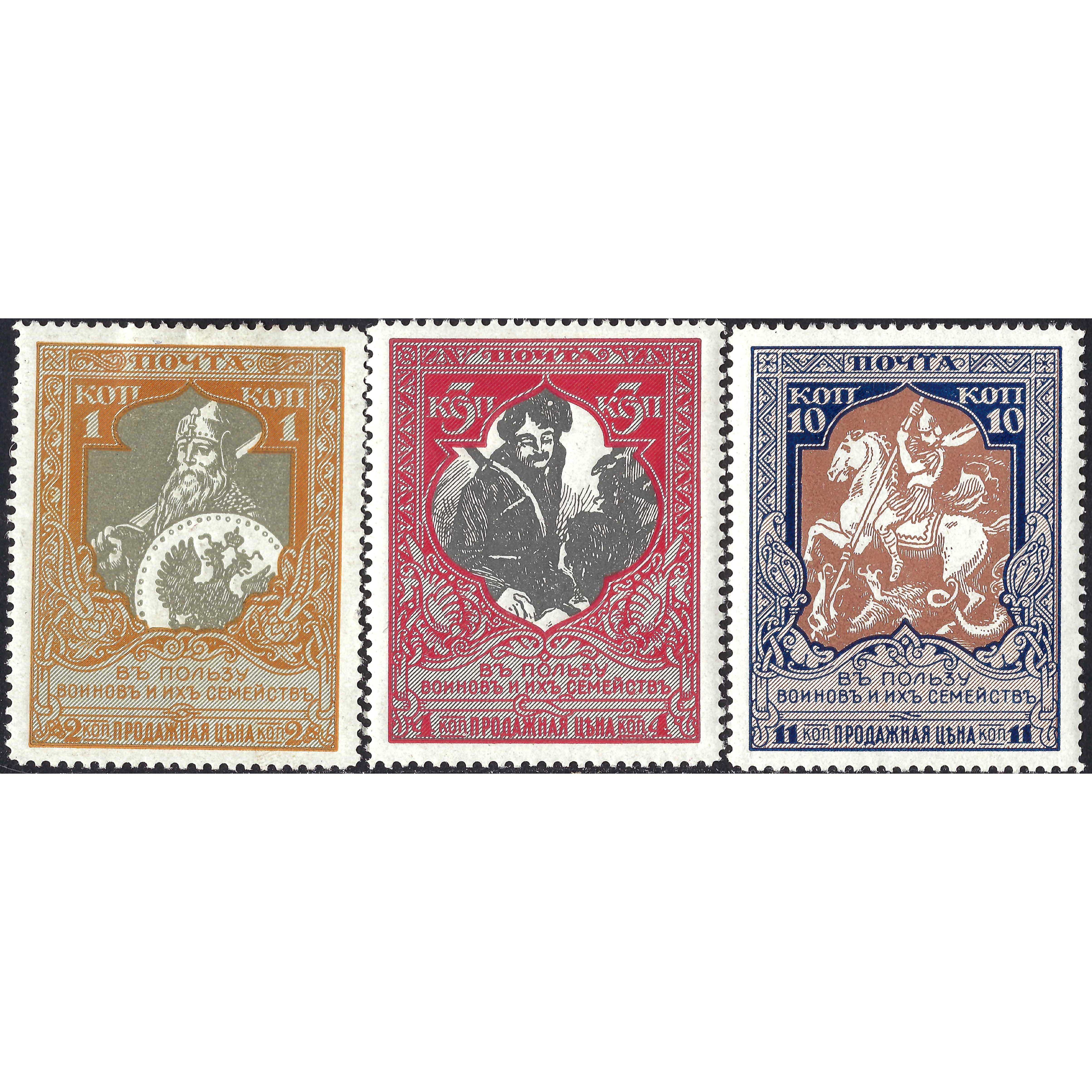 1915, Russian Empire, 1+1k-10+1k, Solovyov #100B-#103B, Typographed, UnWmk, P13½