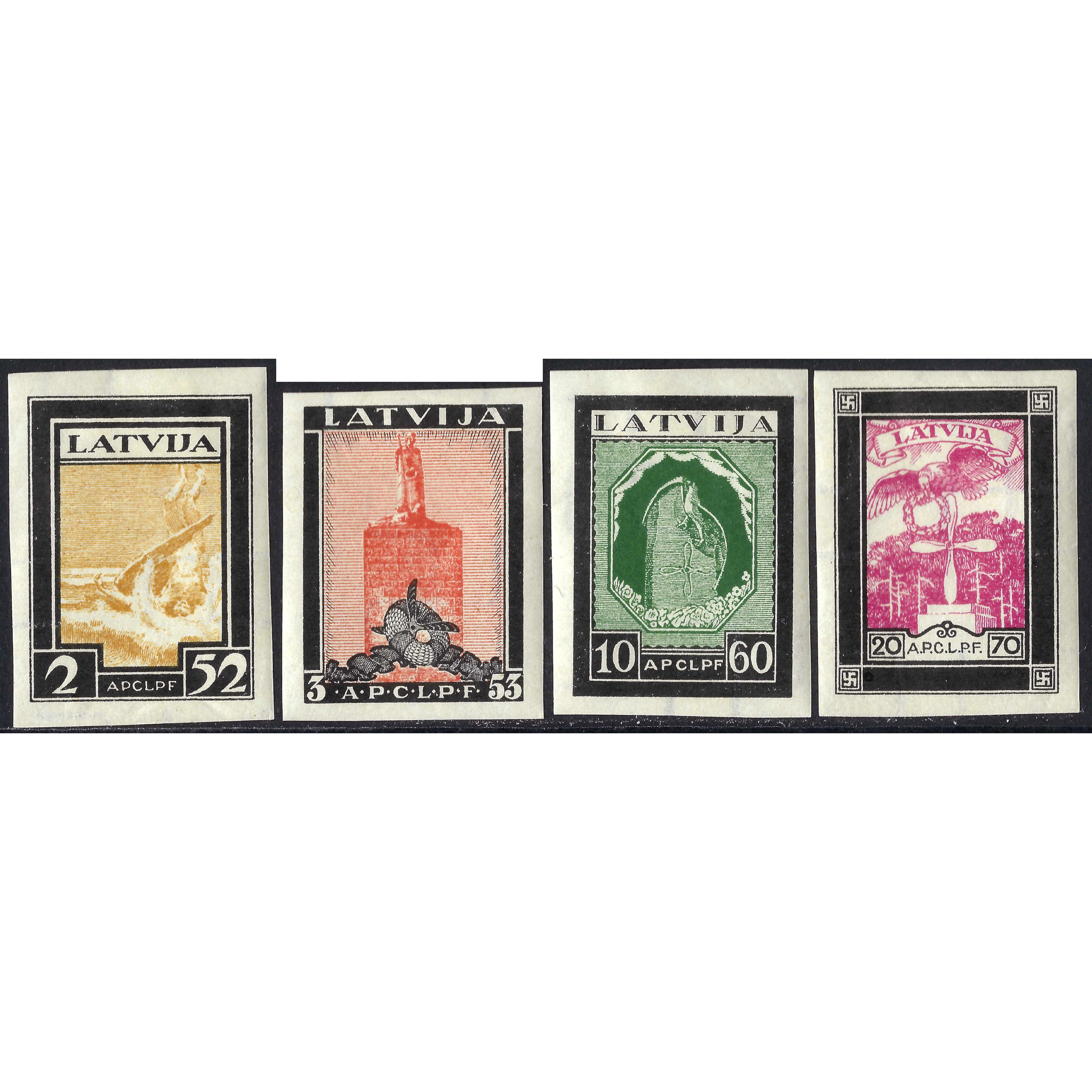 1933, Латвия, 2+52s-20+70s, Соловьев #209A-#212A, Литография, ВЗ, Авиапочта