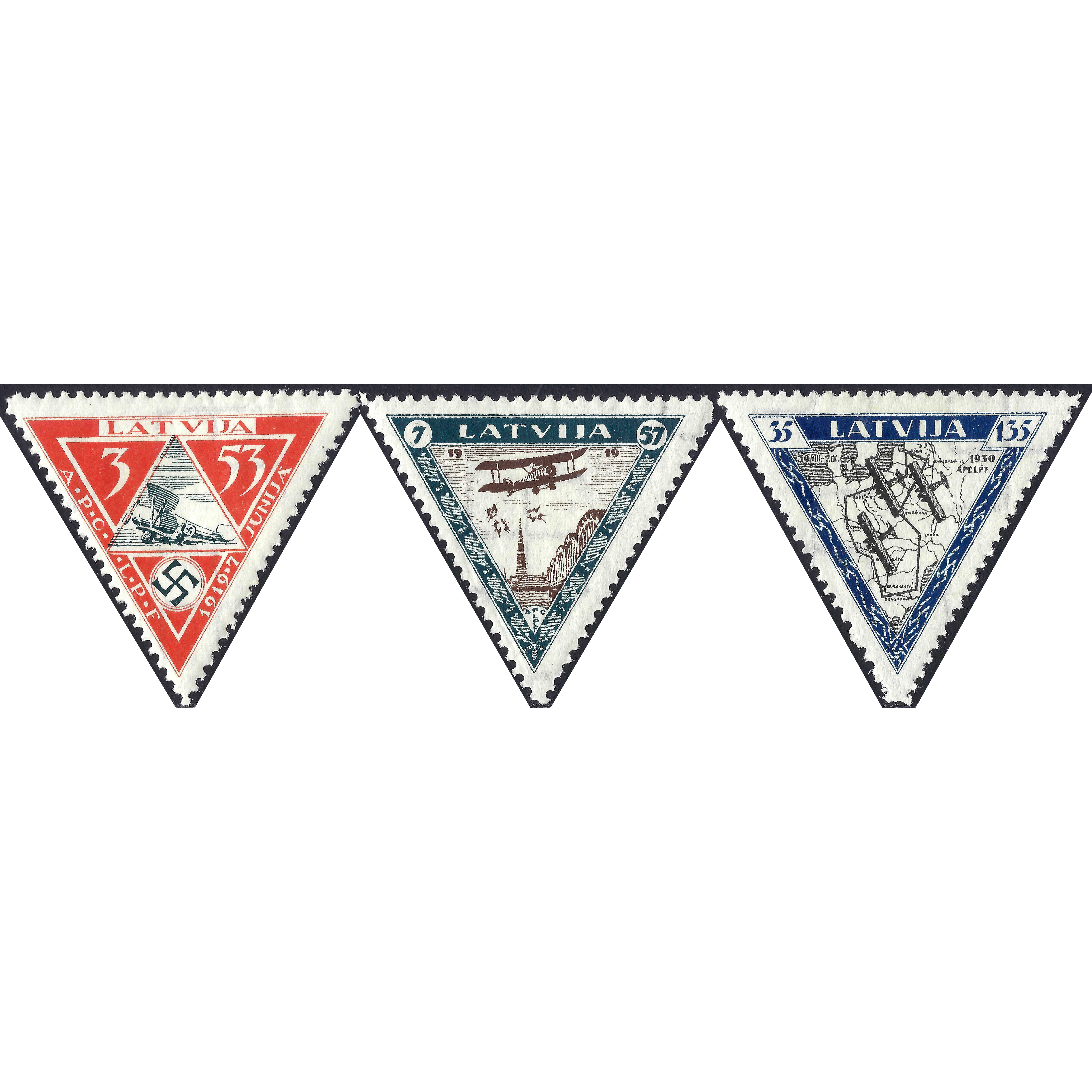 1933, Latvia, 3+53s-35+135s, Solovyov #218-#220, Lithographed, Wmk, P11½, Air Mail