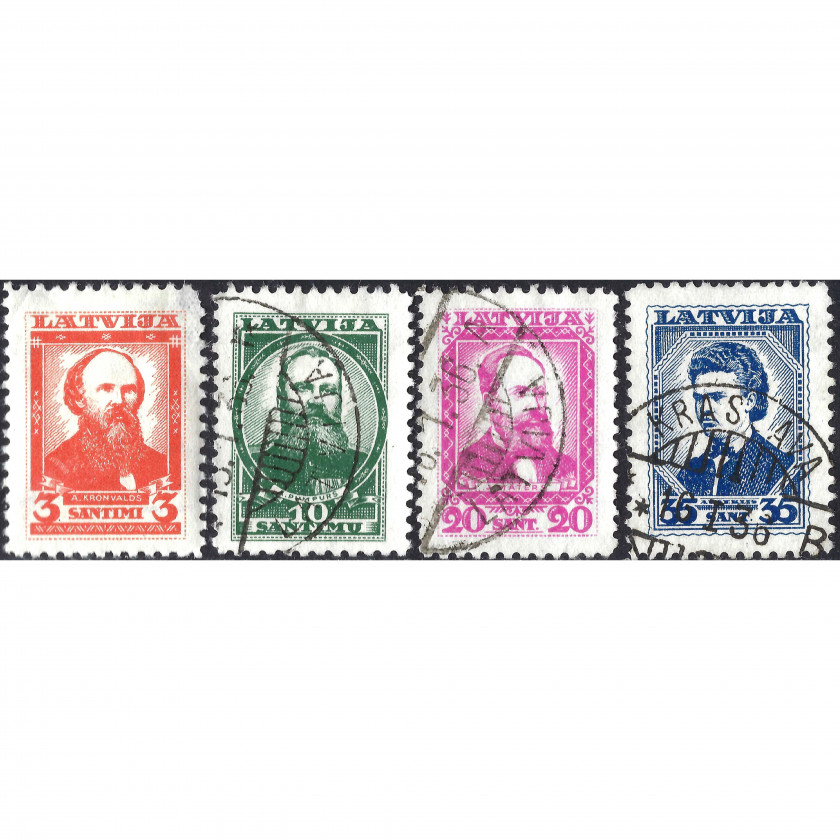 1934, Латвия, 3s-35s, Соловьев #231-#234, Литография, ВЗ, P11½