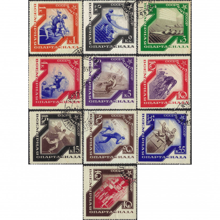 1935, PSRS, 1k-40k, Solovjovs #500-#509, Fototipija, Bez zīmoga, P14, Spartakiāde