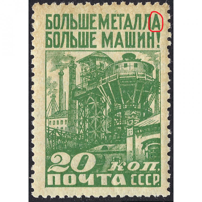 (ERROR) 1929, USSR, 20k, Solovyov #349, Typographed, Wmk, P12.5, Industrialization
